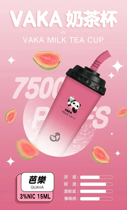 VAKA奶茶杯7500口拋棄式電子煙 – 3%丁鹽 15ml超大容量 600mAh Type-C快充 Mesh霧化 萌熊貓造型